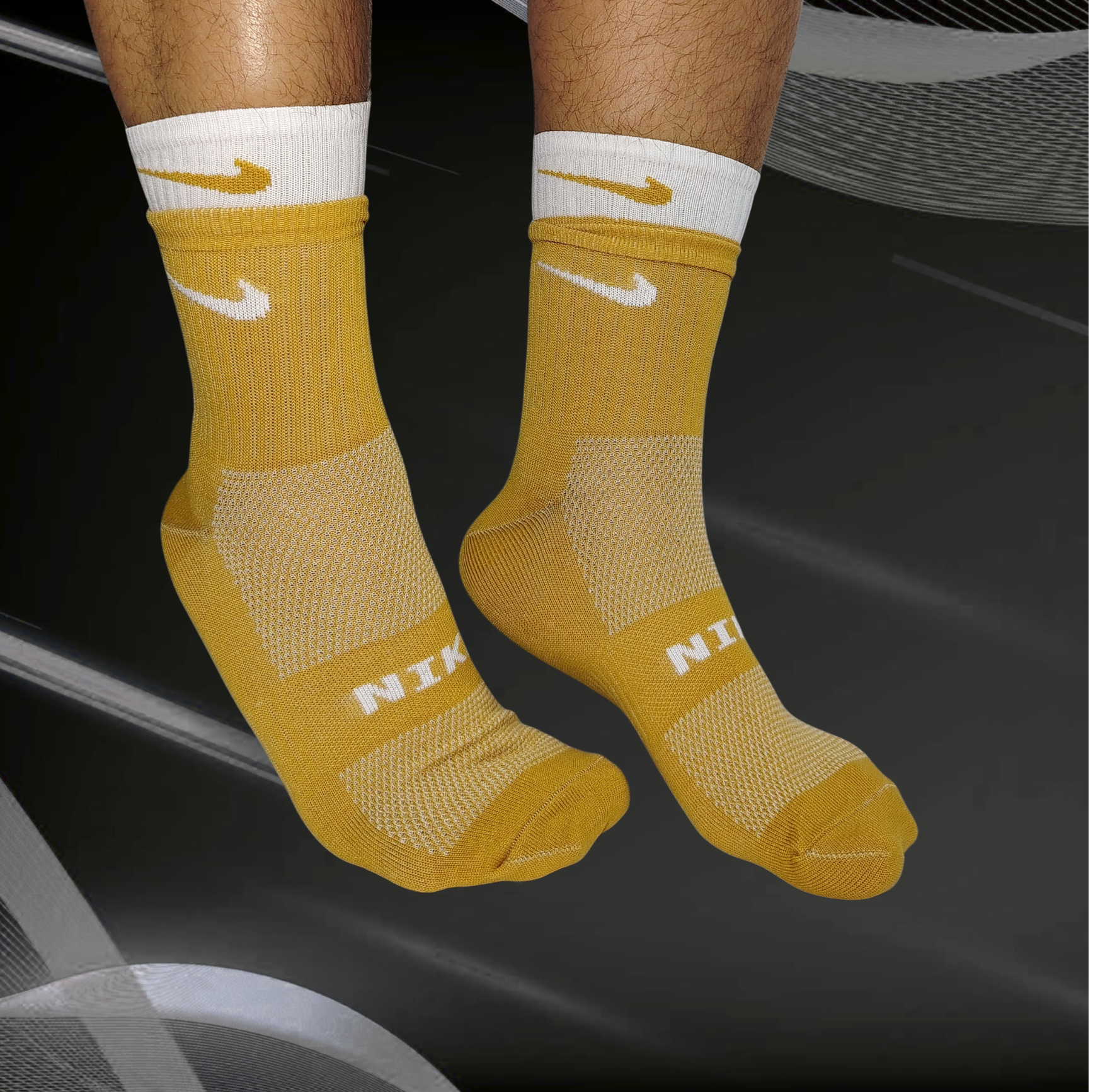 Medias deportivas doble púño blanco y mostaza